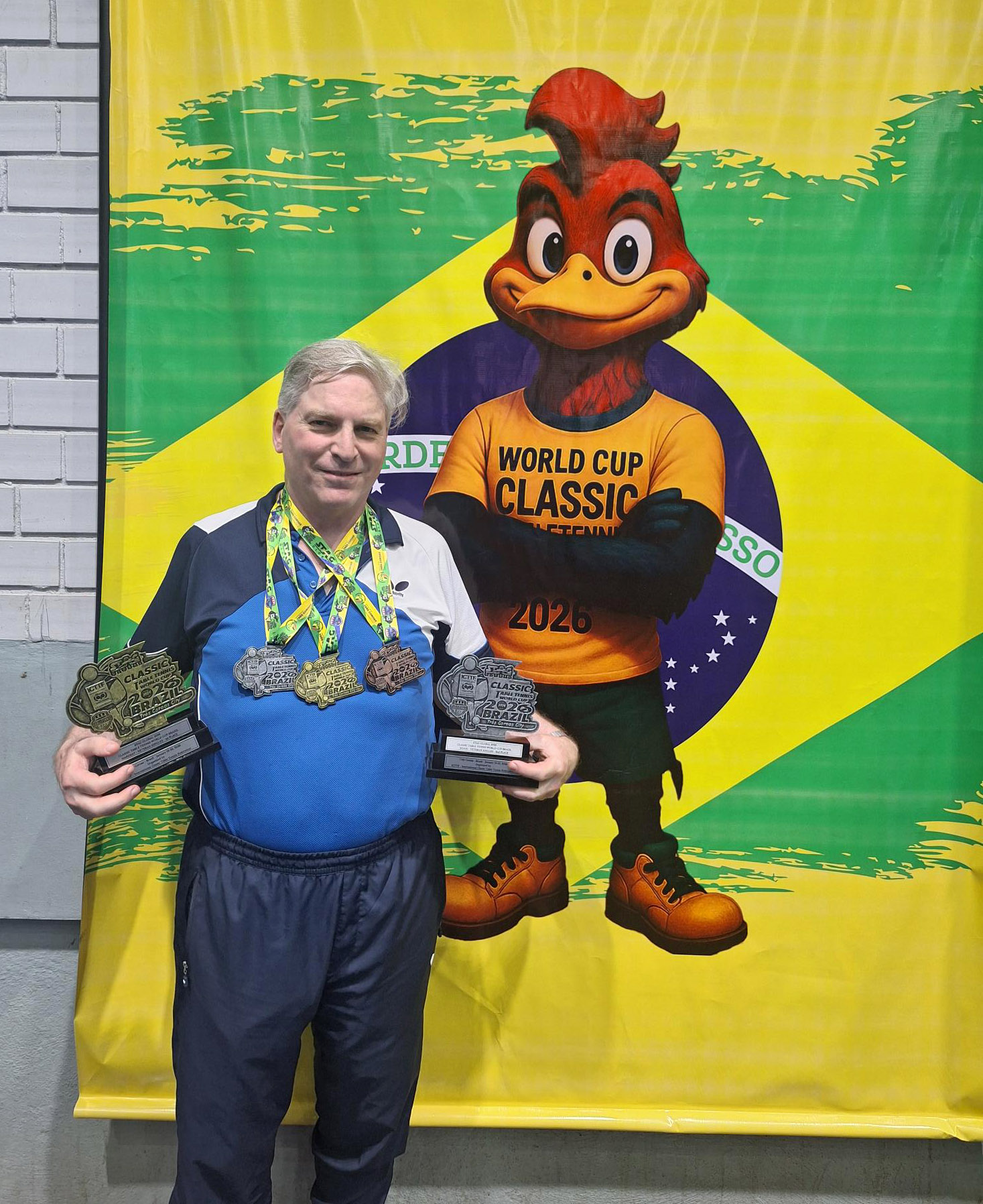 I just spent a month in South America, competing in the Classic Table Tennis World Cup in Três Coroas, Brazil, Jan. 18-25. I won gold in Over 60 Hardbat Singles and silver in Over 60 Woodbat singles, as well as quarterfinals in sandpaper. Here's me with my winnings! (There was also a nice cash prize. Note that I play both hardbat and sponge, and now wood and sandpaper!) All the training I've been doing with Lidney Castro paid off. Fortunately, I've gotten over the various ongoing injuries I've battled this past year, especially my shoulder, side, and knee, all on the right side. Afterwards I spent three weeks touring South America, returning Feb. 12. I posted long notes almost every night about my sightseeing on Facebook, including photos. If you want to read about my adventures, here's my Facebook Page. Page down to January 16, and go from there! Here are the places I visited and toured.